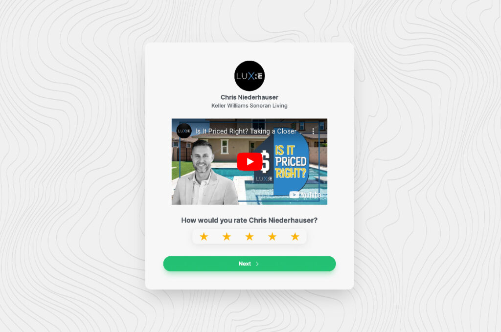 When a customer arrives at your WantsReviews.com site, they will be prompted to leave a review (From 1 – 5 stars)